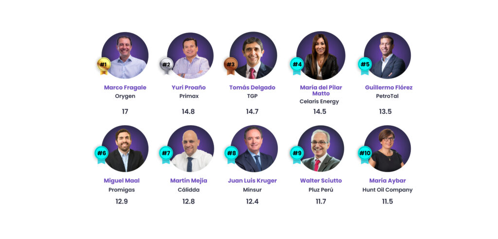 - Tomás Delgado (TGP) – 14.7 pts. | Sobresale por una comunicación clara sobre los desafíos y proyectos del gas natural.